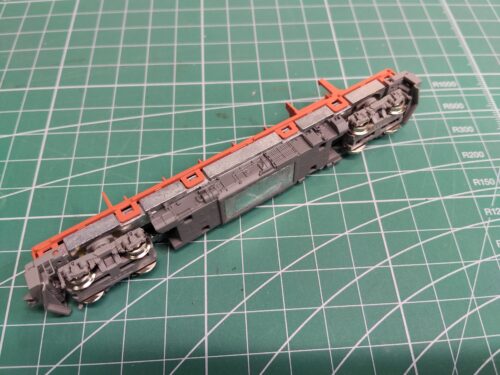実車は1E側のみ付いていますので、床下機器パーツの▲マークのある側に取り付けます。