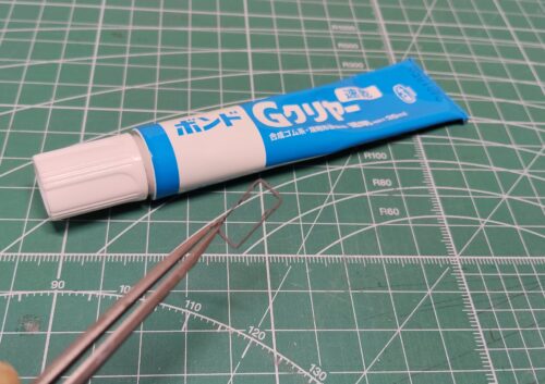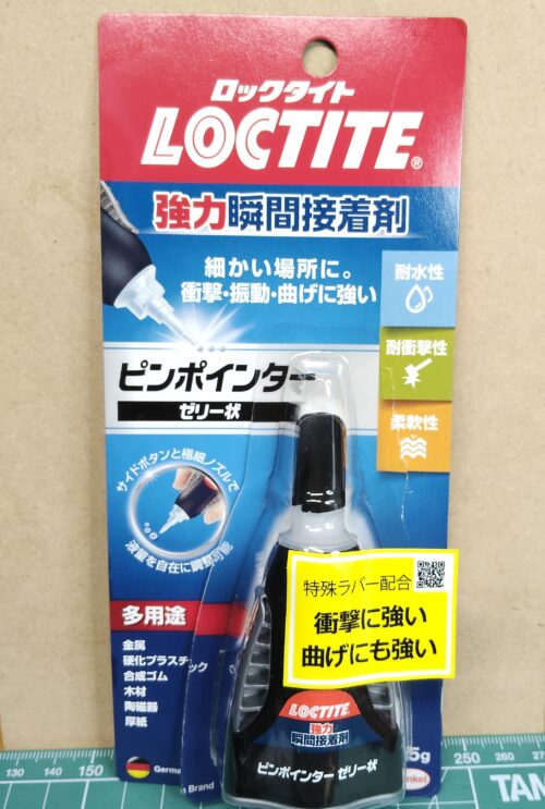 接着面積がとても小さいので接着剤選びに悩みますが、上級者であれば写真のような衝撃に強い瞬間接着剤(写真はロックタイト強力瞬間接着剤ピンポインター)などがしっかりと取り付けできます。ただし、取り付け時にやり直しが難しいので難易度は高いです。