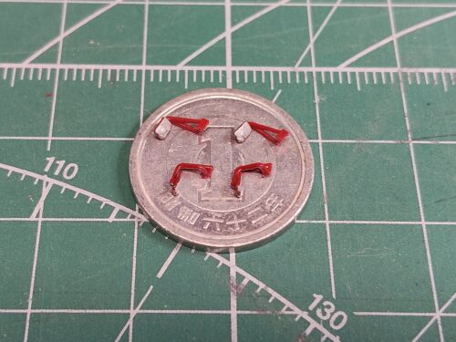 サイドミラーの取り付けです。極小パーツの塗装、取り付け難易度が高いので任意としています。