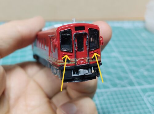 今回はそのままですが、座席表現が朱色なのでブルーに塗った方が窓から見える雰囲気が良くなると思います。