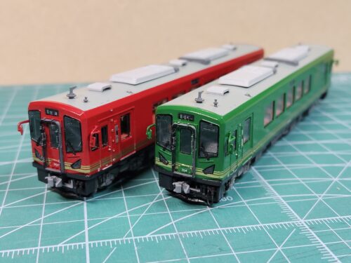 偶数番車の緑も製作しました。並べるととても良い雰囲気です!